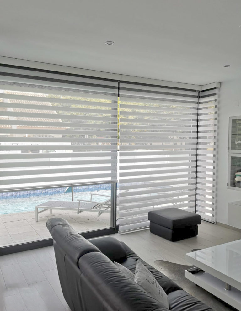 Son la solución perfecta para regular la luz entrante y la privacidad de ambiente, está compuesto por doble tela, al mover las telas se puede jugar con la luz, protege muebles, pisos de los rayos UV sistema manual o motorizado.